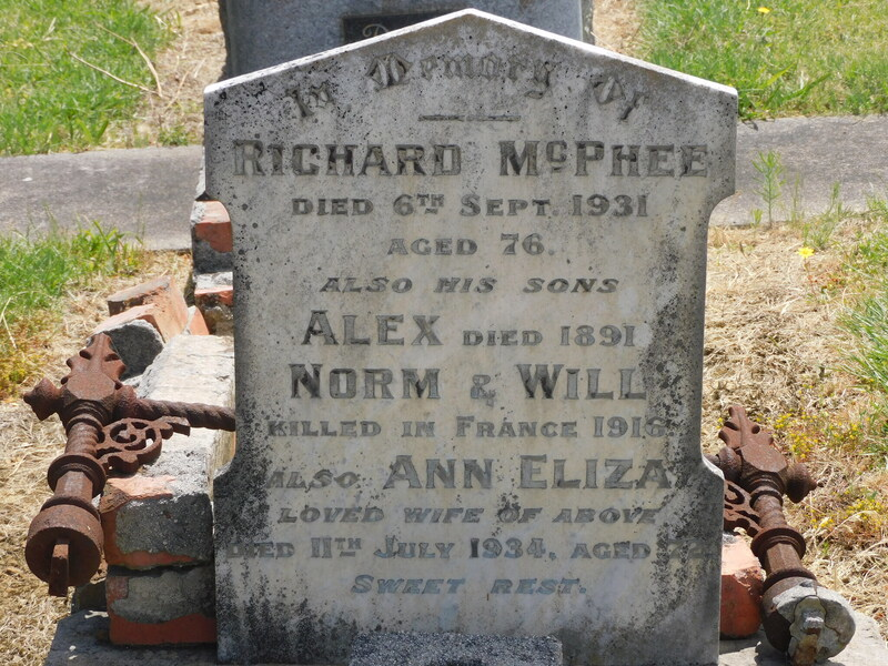 | Norman Donald McPhee (1887-1916) Born Brunswick, KIA France 29/6/1916 | |||