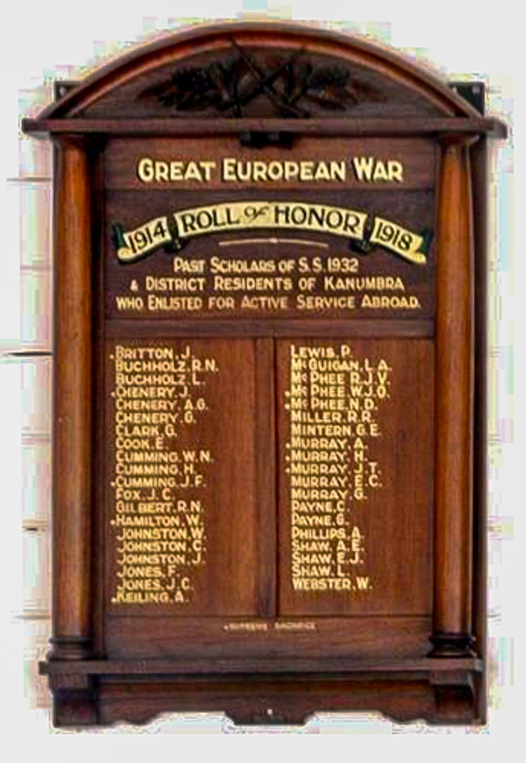 At some stage, the family also had connections to the Yarck and Kanumbra district, where Will’s name, along with those of two of his brothers, appears on the local Roll of Honour.