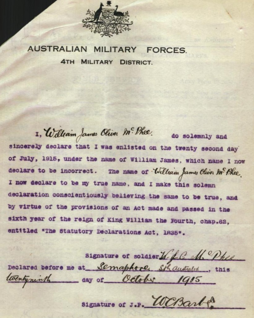 Source: NAA B2455, McPhee William – First AIF Personnel Dossiers, 1914-1920, page 59
