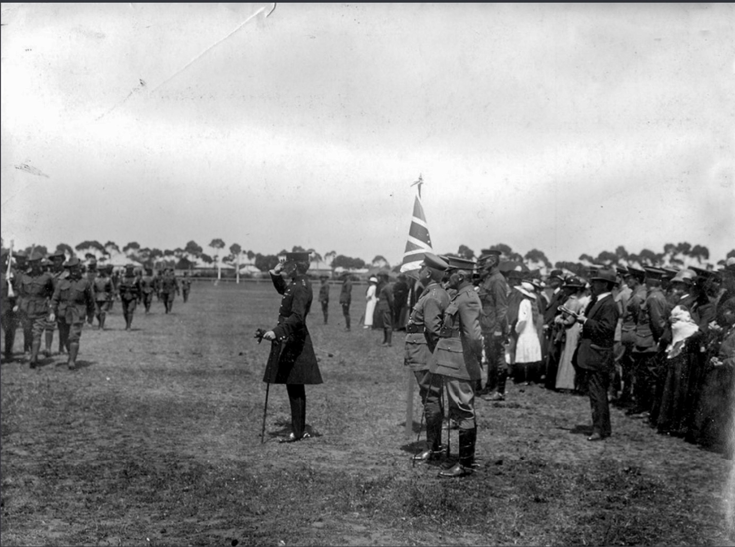 A and B Companies and most of the 1st Reinforcements were made up of recruits from South Australia and C and D Companies came from Western Australia. There was much fanfare about this new battalion in South Australia, with gatherings, community support, Cheer-up Society activities, reviews of the troops by the governor, and parades through the streets of Adelaide. On 16 September, the South Australians members of the Battalion moved to a new camp at Cheltenham Racecourse and the West Australians who had begun their training at Blackboy Hill near Perth joined them at the end of September. The full battalion, including the 1st Reinforcements, continued training at Cheltenham until their departure.