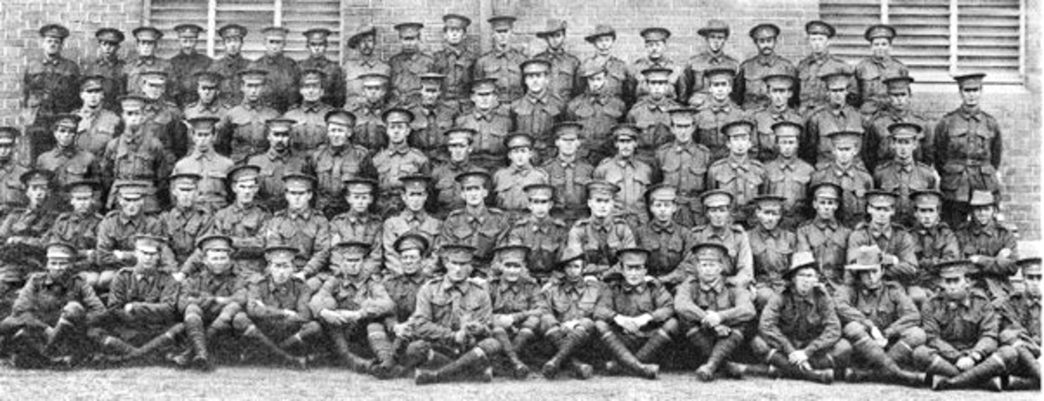 There is no known photo of Sam Mahoney. He is probably in this pre-departure photo of the First Reinforcements of the 32nd Battalion, taken at Cheltenham Camp in 1915.