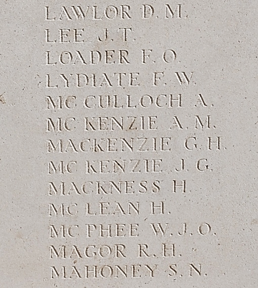 Private Sam Mahoney’s name is inscribed on Panel 5 of the V.C. Corner Australian Cemetery Memorial at Fromelles which commemorates all the Australians killed at Fromelles whose bodies were not recovered after the battle.
