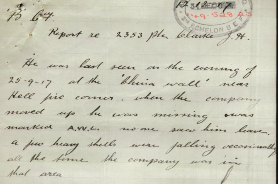 Source - AWM Red Cross Missing and Wounded Files – John Bowman Clarke, p4