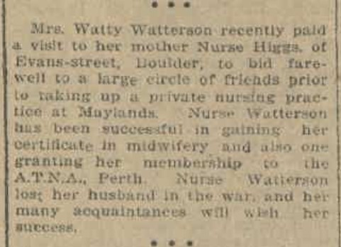 - William Watterson 1871–1916 married Irene Winifred Heath (WA)