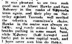 Sam was a talented footballer and he was featured in a Kapunda match report in 1908, just after the death of his father.