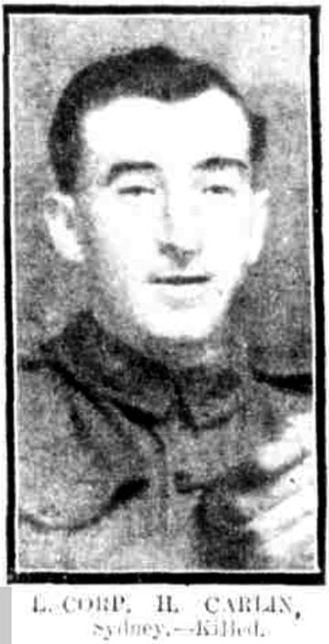 “CARLIN.—Lance corp Harry Carlin late of Glasgow, killed in action July 19 or 20 1916 aged 20, dearly beloved brother of Lizzie Carlin, Cambridge-street, Rozelle. R I P.”