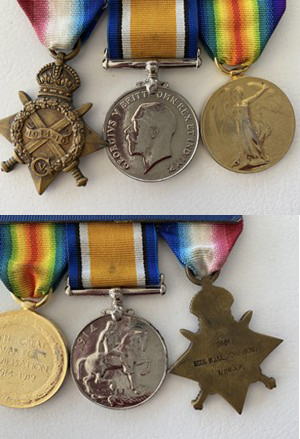 - 1914–15 Star – awarded to men who enlisted and served in a theatre of war prior to the end of 1915. Milton embarked on 14 July 1915 with the 1st Battalion, so he qualified.