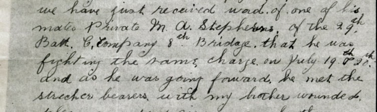 Will was among the missing and the family were notified, but no hard information was available from formal channels for an anxious family. In September, the family did get a ‘hopeful’ letter via the family of one of Will’s mates, Private Malcolm A. Stephens (3327), 29th Battalion, who was from the nearby town of Apsley. He had written that he said he had seen Will wounded and being carried back by stretcher bearers.