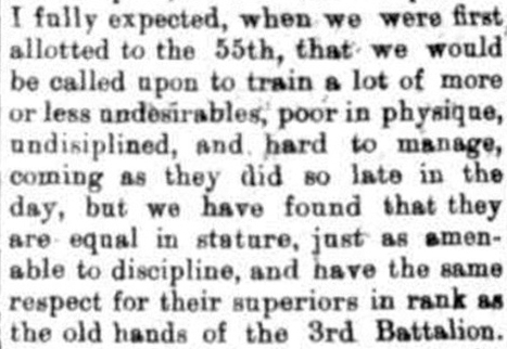 The 55th Battalion was raised in Egypt on 12 February 1916 as part of this expansion. Roughly half of the 55th’s recruits were Gallipoli veterans from the 3rd Battalion and the other half were fresh reinforcements, predominantly from New South Wales. The new recruits seemed to fit in well with the veterans.