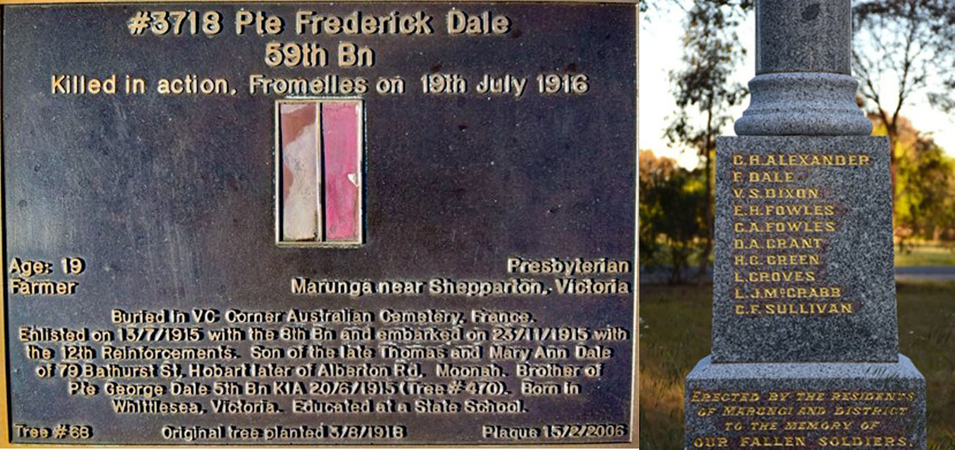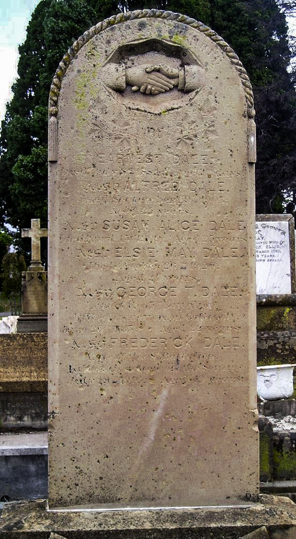 “In loving memory of Private G. T. Dale, killed Gallipoli June 28, 1915… Also killed in action, France, Private F. J. Dale, July 19, 1916, loving brother of May Dale, and grandson of the above.