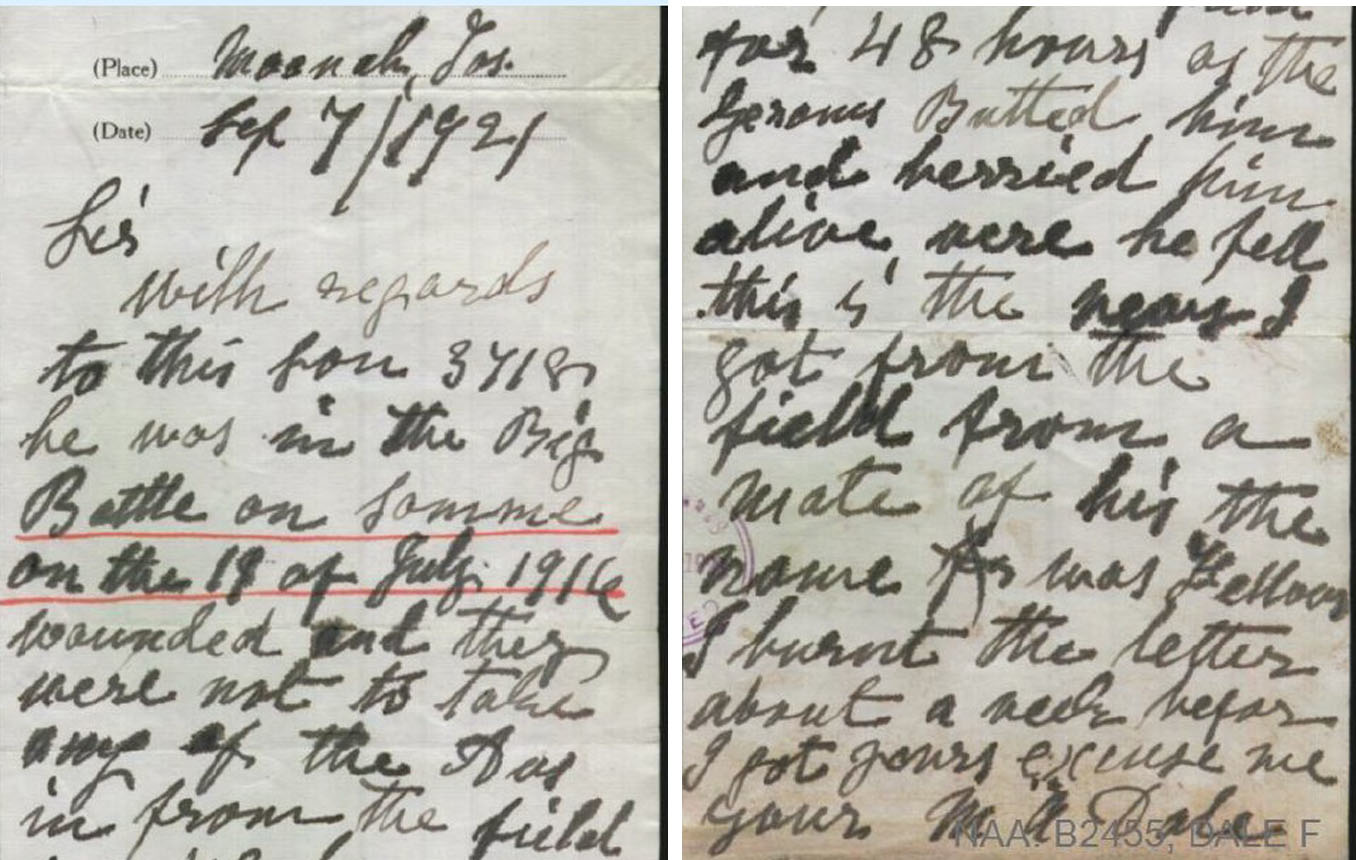 Source – NAA, B2455, Dale, page – First AIF Personnel Dossiers 1914–1920, p 30