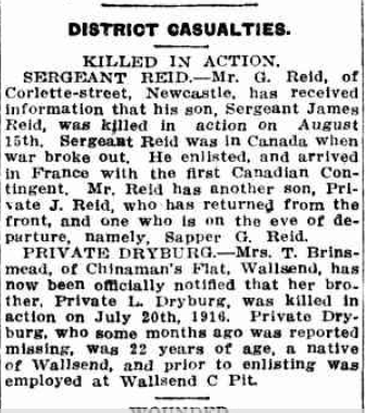 James Leslie “Les” Dryburgh was born in 1893 in Minmi, Wallsend, New South Wales, near Newcastle. He was the third of John and Annie (nee Mean) Dryburgh’s four surviving children. His three sisters were Jane (Ginnie), Annie and Ada.