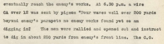 “The enemy swarmed in and the retirement across No Mans’ Land resembled a shambles, the enemy artillery and machine guns doing deadly damage.”