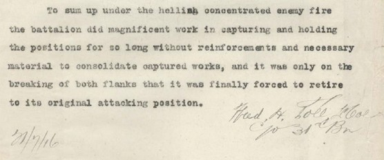 Source: AWM4 23/48/12, 31st Battalion War Diaries, July 1916, page 29