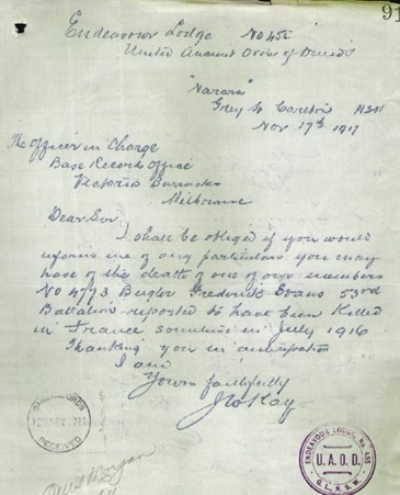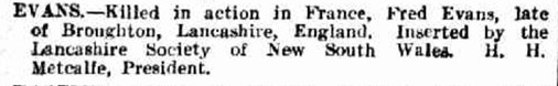 There are no Army or Red Cross witness statements about what happened to him. His parents in Manchester received the official cable that he had been killed in action. News home was slow and Fred’s his friends in Sydney sought confirmation of his fate. When it was confirmed, they submitted tributes in the local papers - a lot of respect for someone who had only been in Australia for a few years.