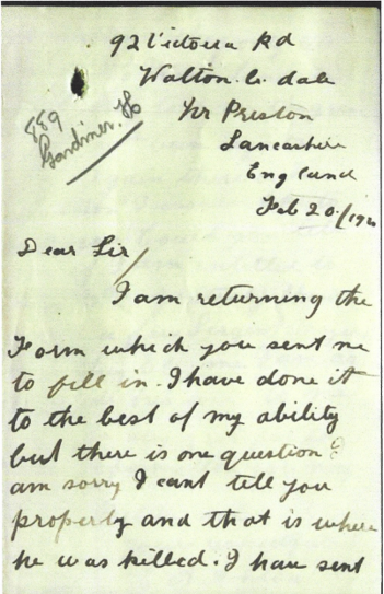 On opening, I was surprised to read that it was from a researcher investigating the life of an Australian soldier, Henry Gardner, who died in France during World War 1. In an attempt to identify him, this Australian researcher – Ann – was asking if I was the great-granddaughter of Mrs Elizabeth A. Ashton? Well, I was! My sister vaguely recalled my mother talking about having relatives in Australia but unfortunately, we could not ask her as she had died six years earlier.
