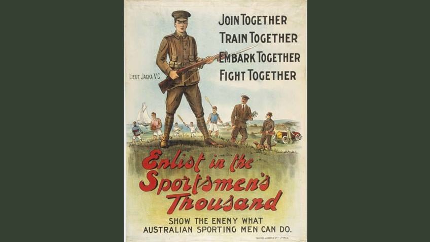 The Australian War Memorial says the campaign to enlist sportsmen was fuelled by a strong belief that by playing sport young men developed specific skills and qualities that could be used on the battlefield.
